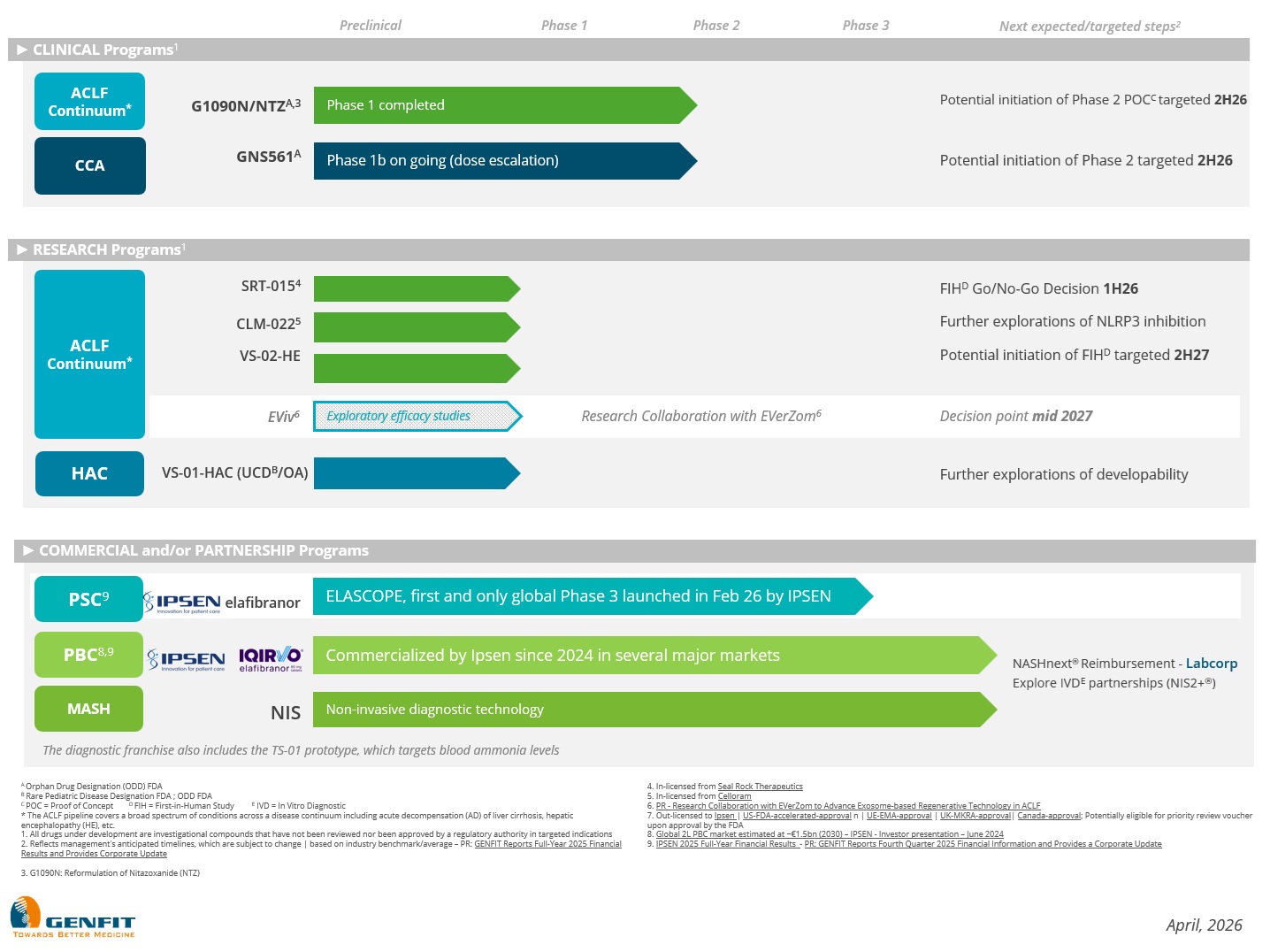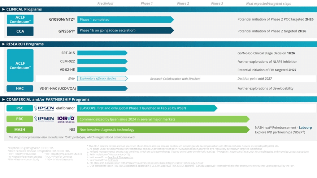 Beyond therapeutics, GENFIT’s pipeline also includes a diagnostic franchise focused on NASH/MASH1 and ammonia.